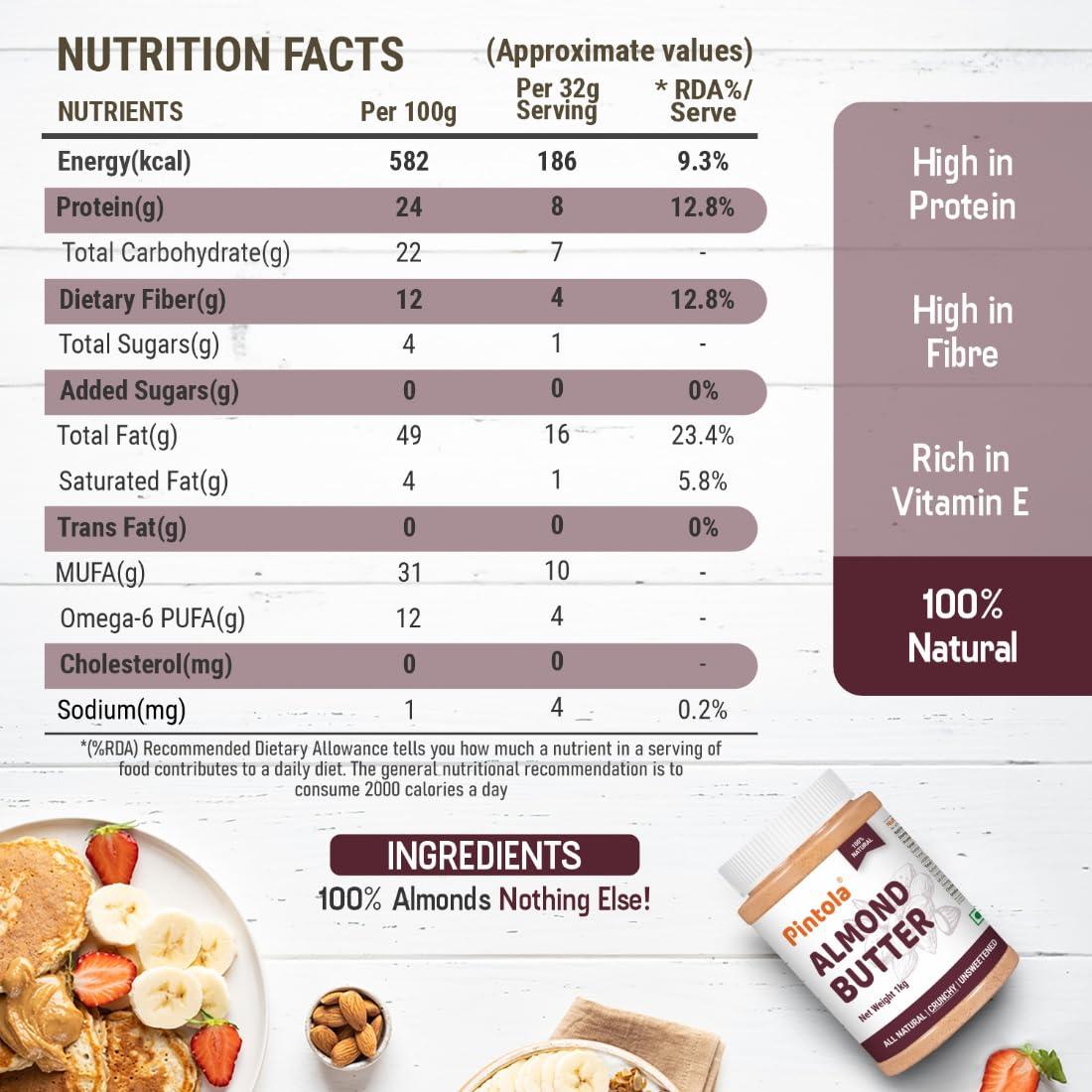 NATURALLY CREAMY PERFECTION: Indulge in Pintola Almond Butter Creamy, an all-natural, unsalted delight with a satisfying creaminess. Elevate your bread spreads with this irresistible, wholesome treat.