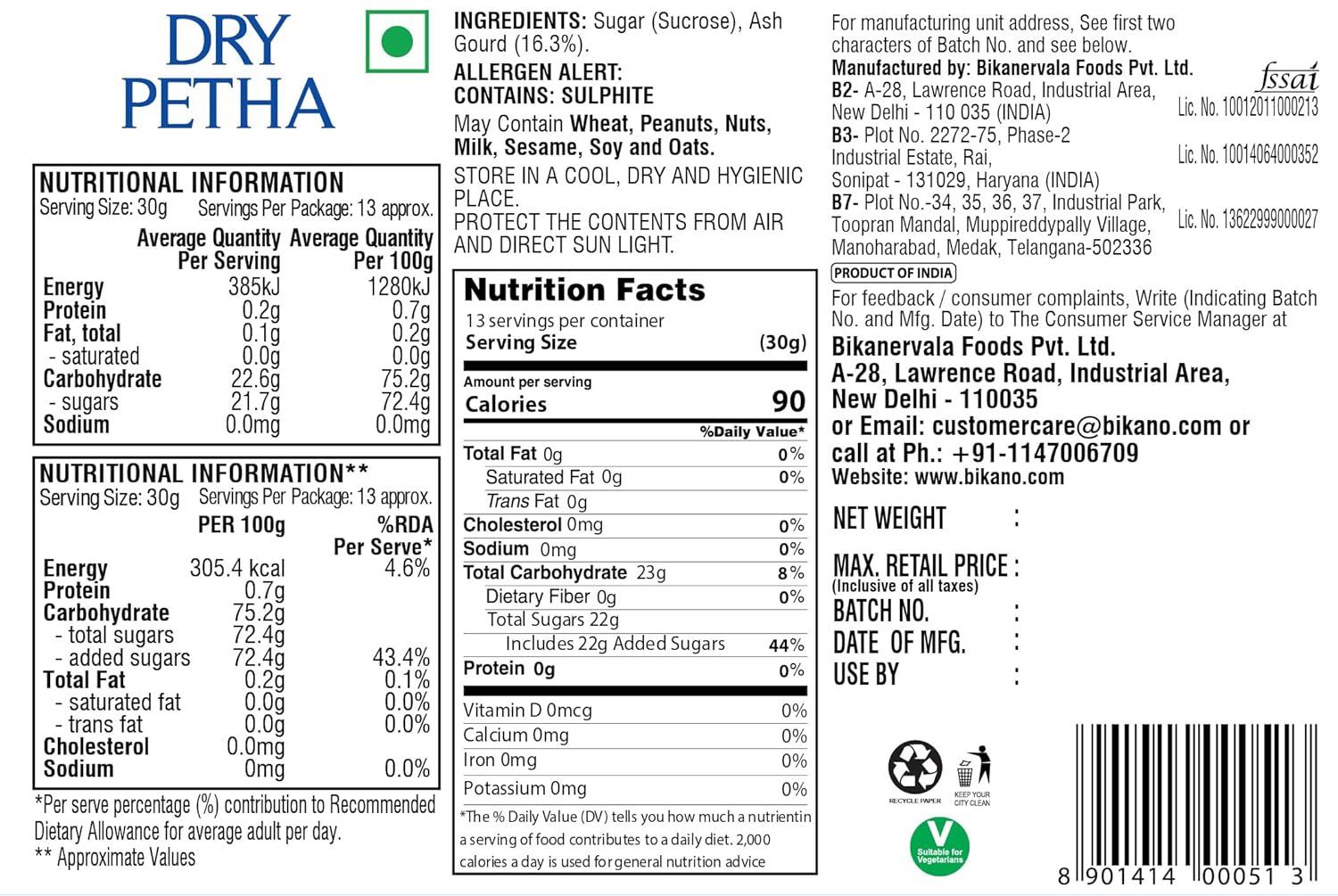 Dry Petha is a popular and mouthwatering sweet treat that originates from India. It is a traditional confection made from chunks or slices of translucent white pumpkin (also known as ash gourd or winter melon) that has been candied and dried. Dry Petha offers a delightful combination of flavors and textures. The sweetness of the candied pumpkin is complemented by the aromatic notes of cardamom and rose water, creating a rich and satisfying taste. Dry Petha is a versatile sweet that can be enjoyed on its own as a dessert or snack. It is also a popular choice for gifting during festive occasions and celebrations.