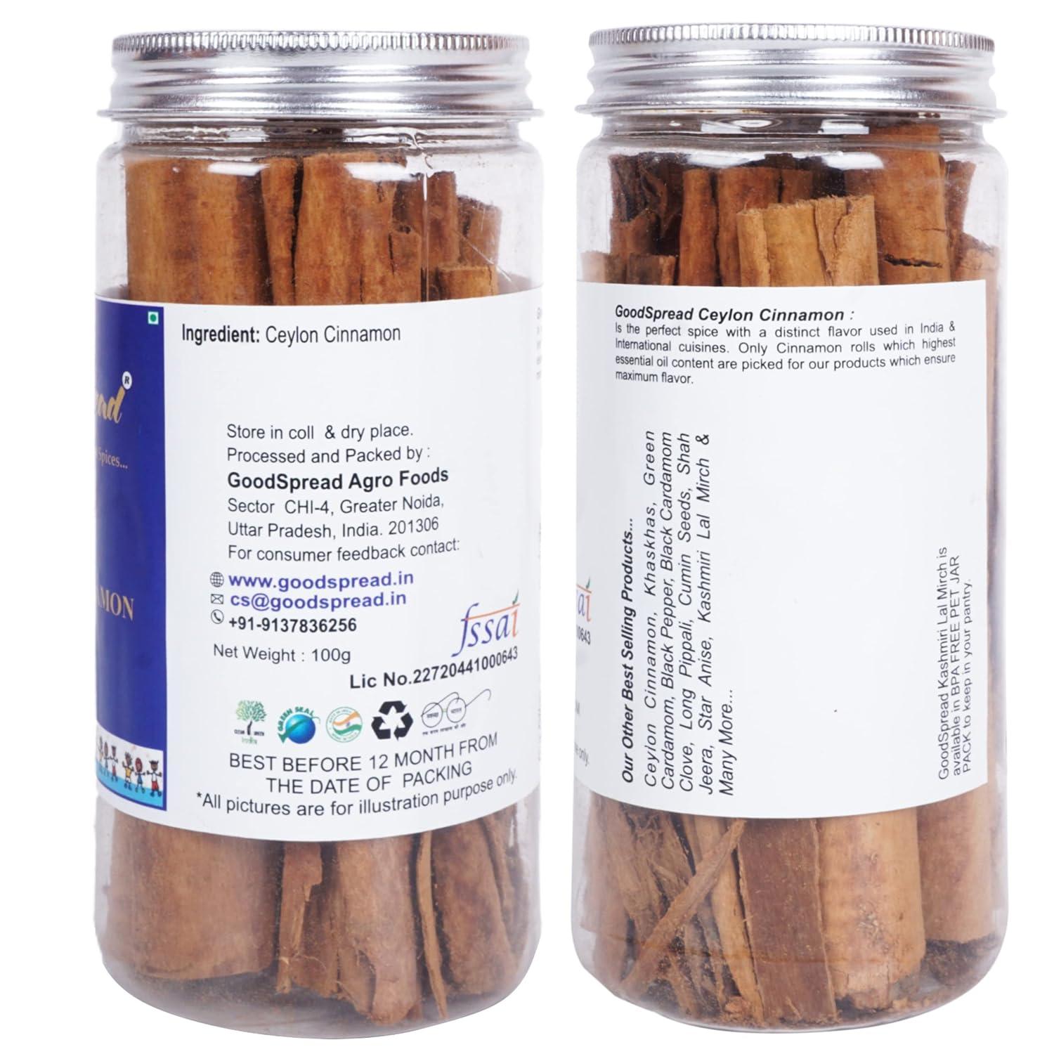 GoodSpread Ceylon Cinnamon Sticks come in a convenient 100 gm package, making it easy to add this flavorful spice to your pantry