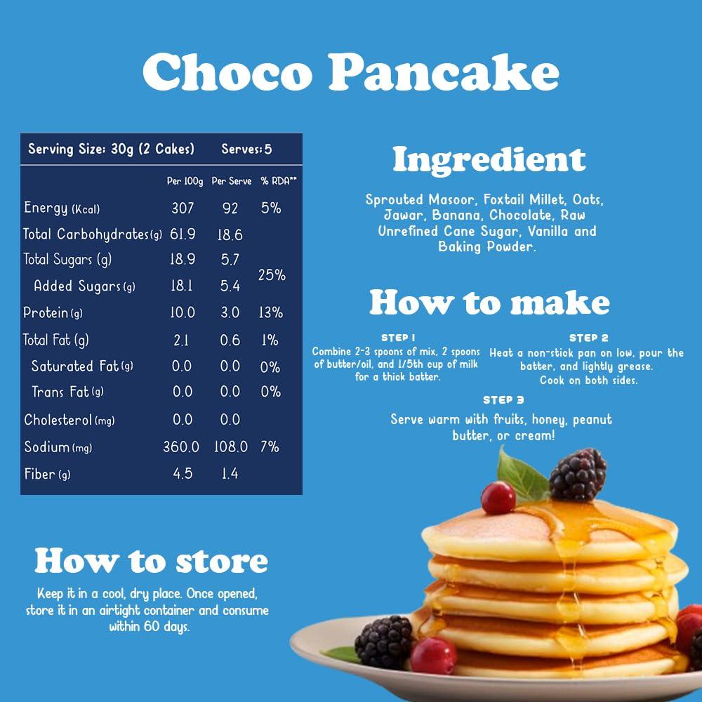 High Protein: Our Choco Banana Pancakes are made of sprouted millets, providing 3 g of protein per serving.