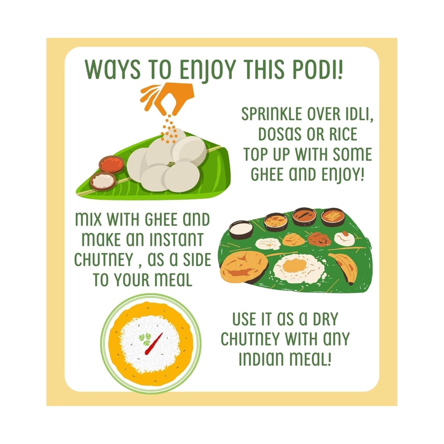 Perfect Pairing with Rice, Idli, Dosa & More – These podis can be used in various ways – mixed with ghee and rice, sprinkled over idli, dosa, or added to curries for an instant flavor boost.