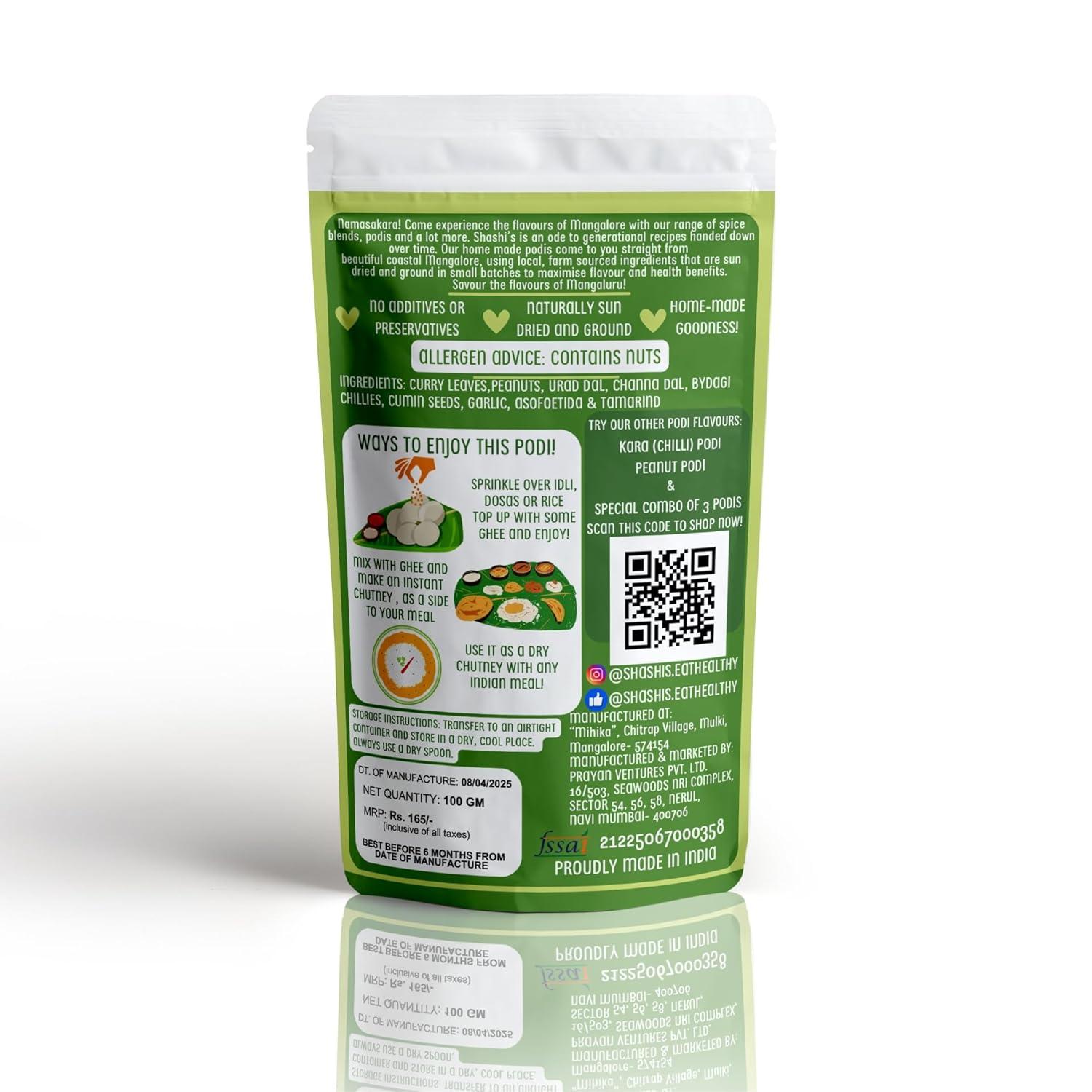 Three-in-One Combo Pack for Maximum Variety – Enjoy the goodness of Kara Podi, Curry Leaf Podi, and Peanut Podi in one combo, giving you multiple flavors to try in your daily meals.