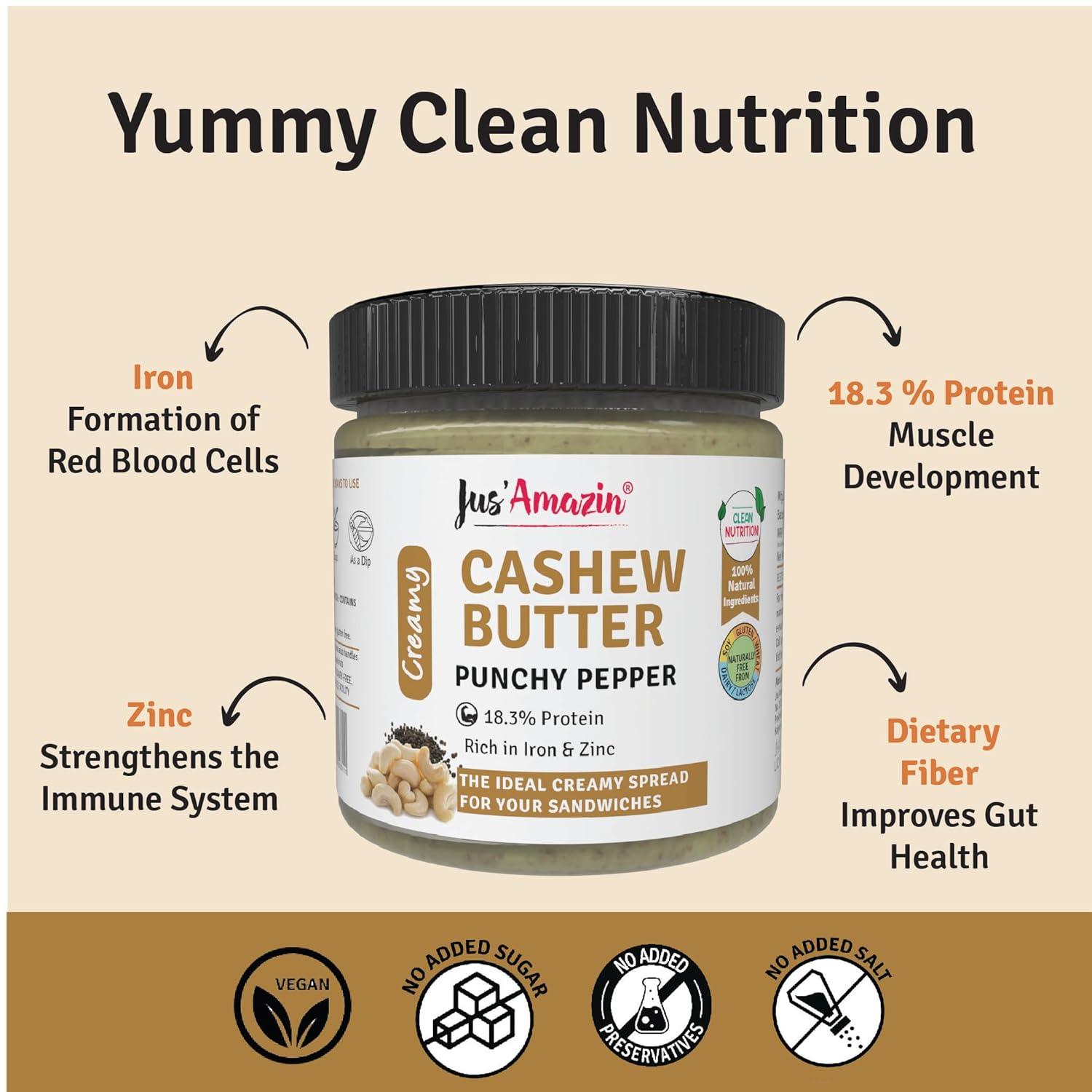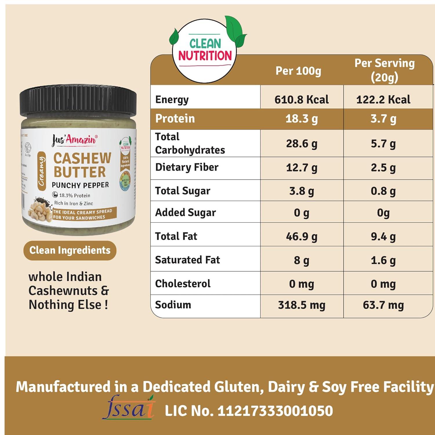 INGREDIENTS : This savoury, creamy cashew butter is made with cashewnuts, organic black pepper and organic rock salt. The combination of cashewnuts and pepper makes this a delicious guilt-free savoury treat.