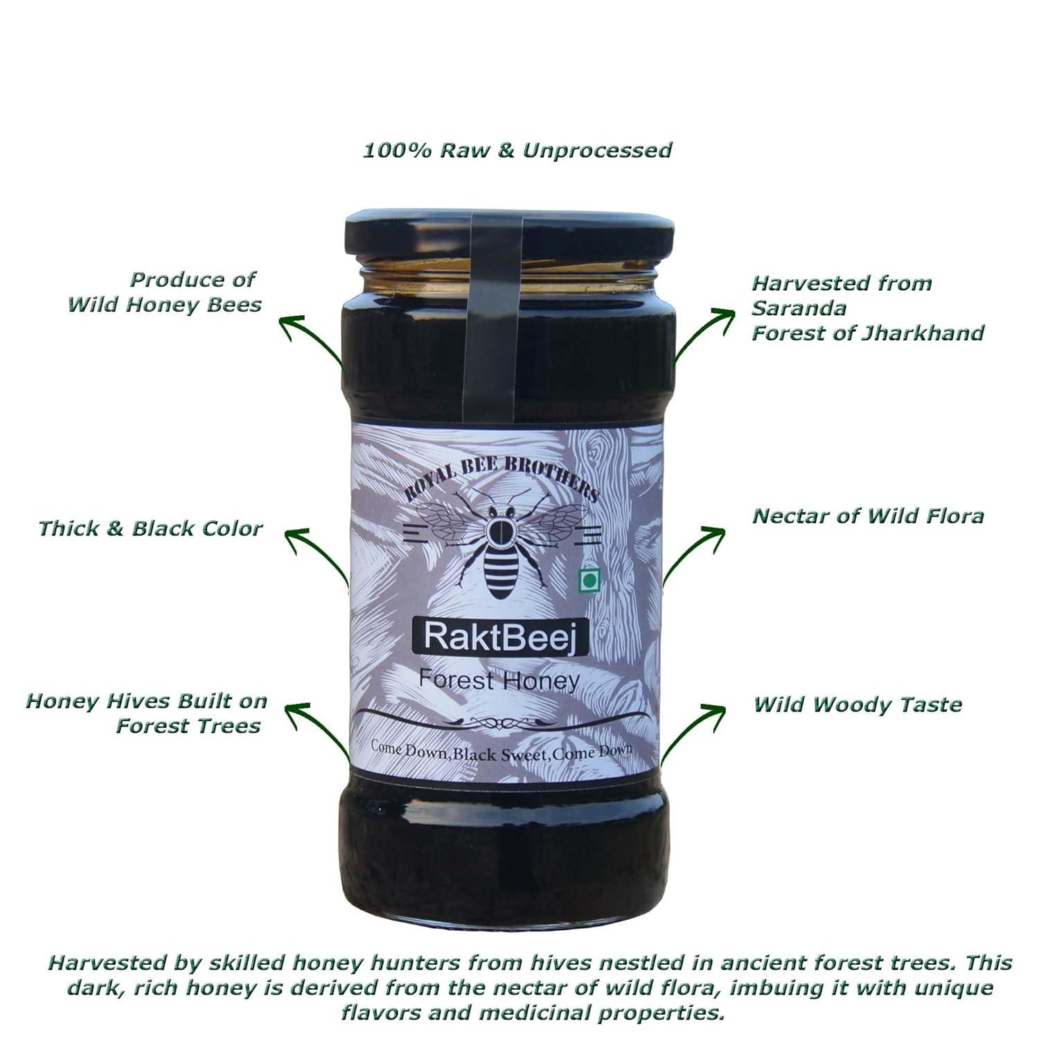 ORIGIN: This raw forest honey is extracted from the bee hives built by wild honey bees in the forest trees. This unprocessed honey has been harvested by team of Royal Bee Brothers from the Saranda (Jharkhand) and Abujmarh (Chhattisgarh) forest region.