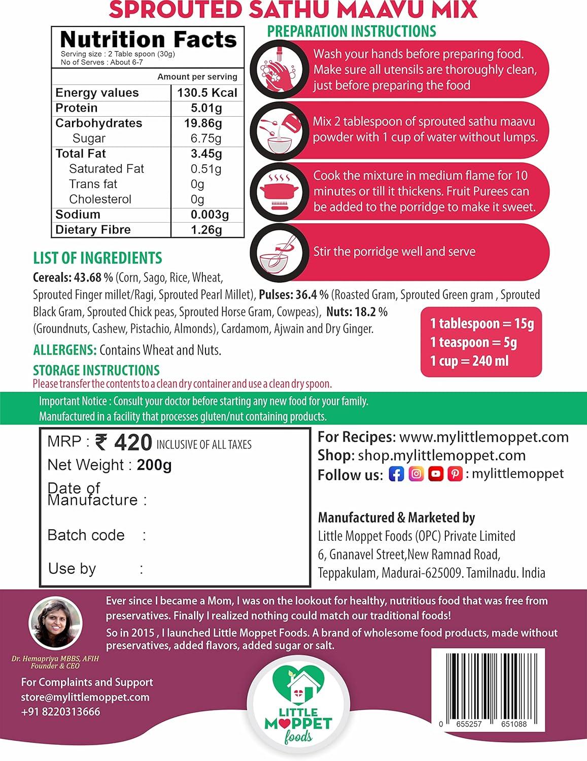👩⚕️ MADE BY DOCTOR MOM - Made by Dr. Hemapriya (Doctor Mom), our Sprouted Sathumaavu Powder is specially formulated for optimal nutrition for kids under Dr. Hema's direct supervision in small batches.