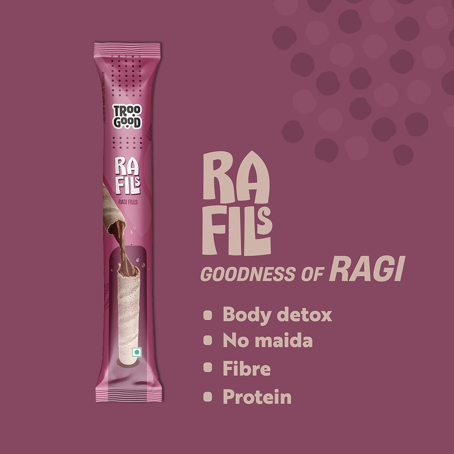 Troo good Rafils is delicious chocolate filling serves a good taste. Its Ragi crust enhances the product's nutrition with a good amount of protein, fibre, and calcium.