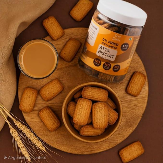 Simple, wholesome, and full of flavor — Atta Biscuits bring the goodness of traditional baking to your everyday snack time. Made with whole wheat flour (atta), these biscuits are high in fiber and nutrients, making them a healthier alternative to refined-flour cookies.