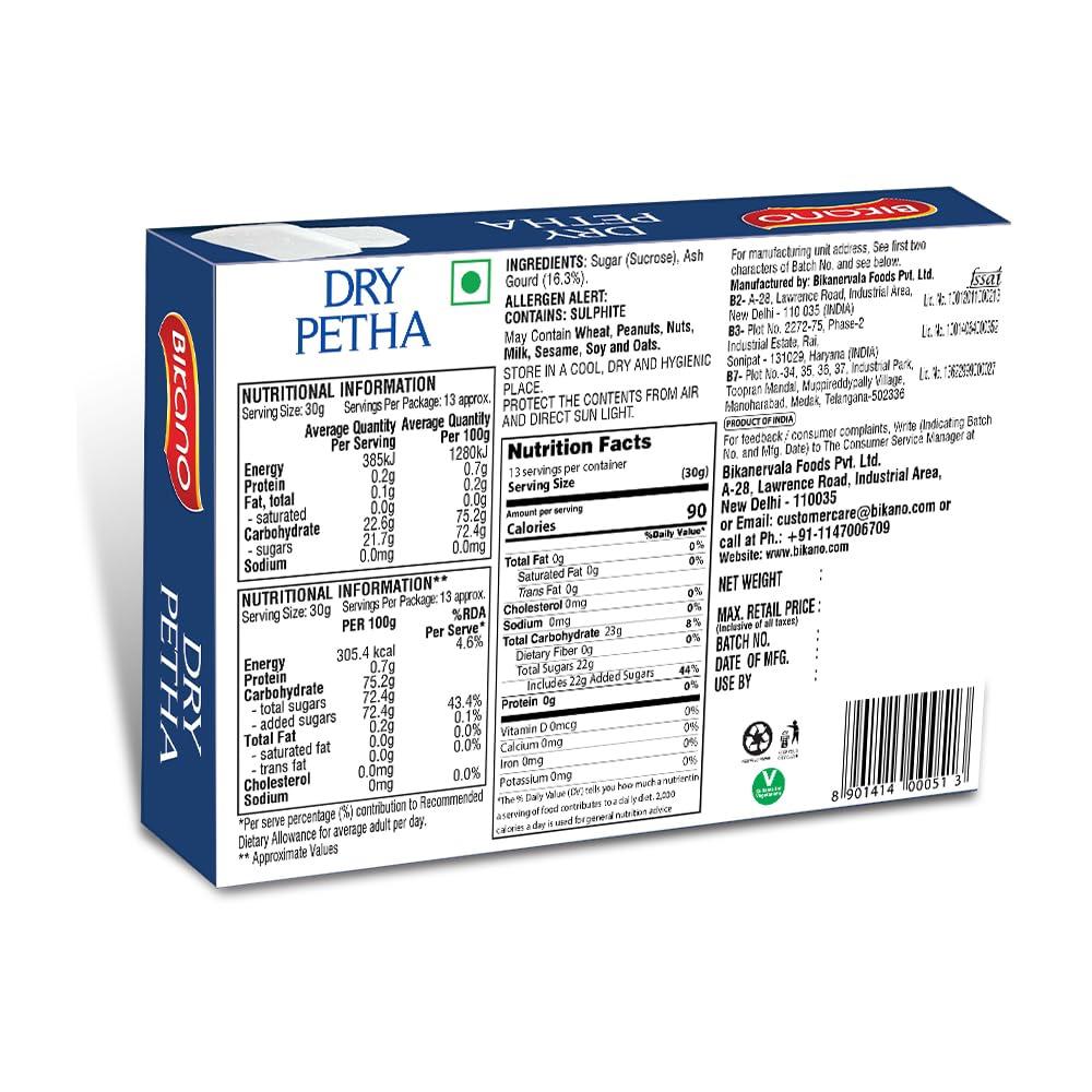 Dry Petha is a popular and mouthwatering sweet treat that originates from India. It is a traditional confection made from chunks or slices of translucent white pumpkin (also known as ash gourd or winter melon) that has been candied and dried. Dry Petha offers a delightful combination of flavors and textures. The sweetness of the candied pumpkin is complemented by the aromatic notes of cardamom and rose water, creating a rich and satisfying taste. Dry Petha is a versatile sweet that can be enjoyed on its own as a dessert or snack. It is also a popular choice for gifting during festive occasions and celebrations.