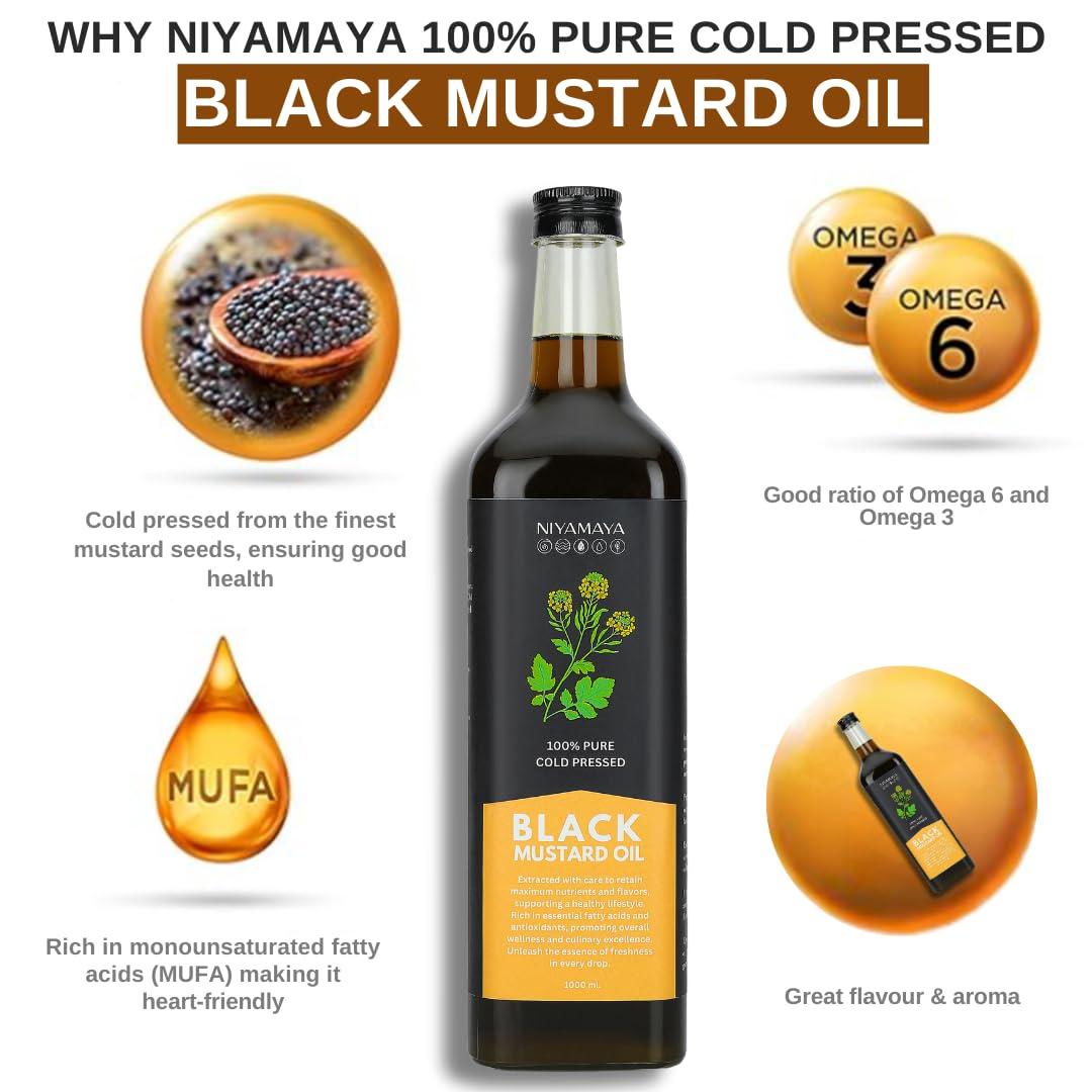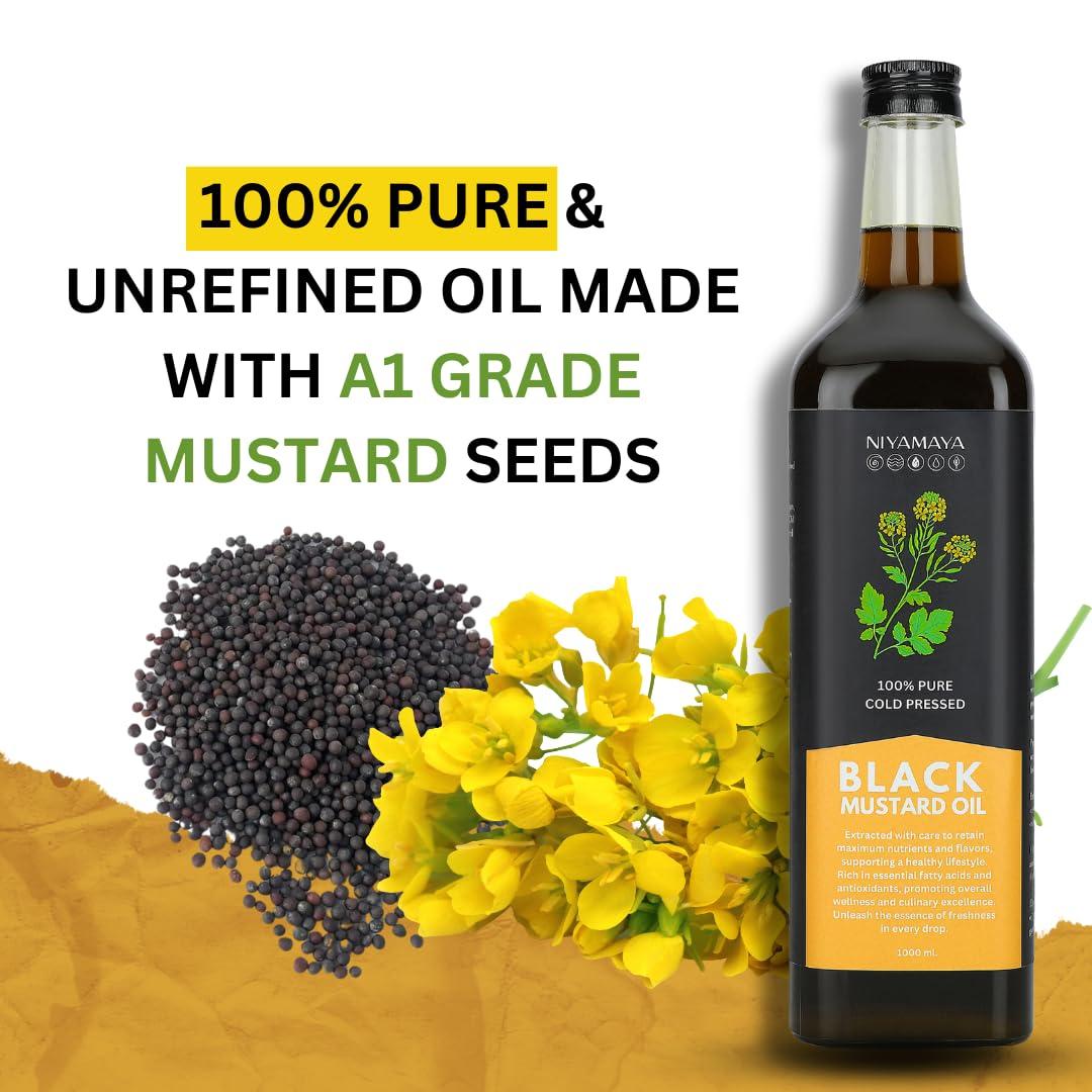 ⭐ Versatile for Cooking and Massage- Niyamaya pure black mustard oil is perfect for authentic Indian cuisine - from tadkas to pickles, marinades to deep frying and also widely used in Ayurvedic massages for improving skin texture and relieving joint pain.