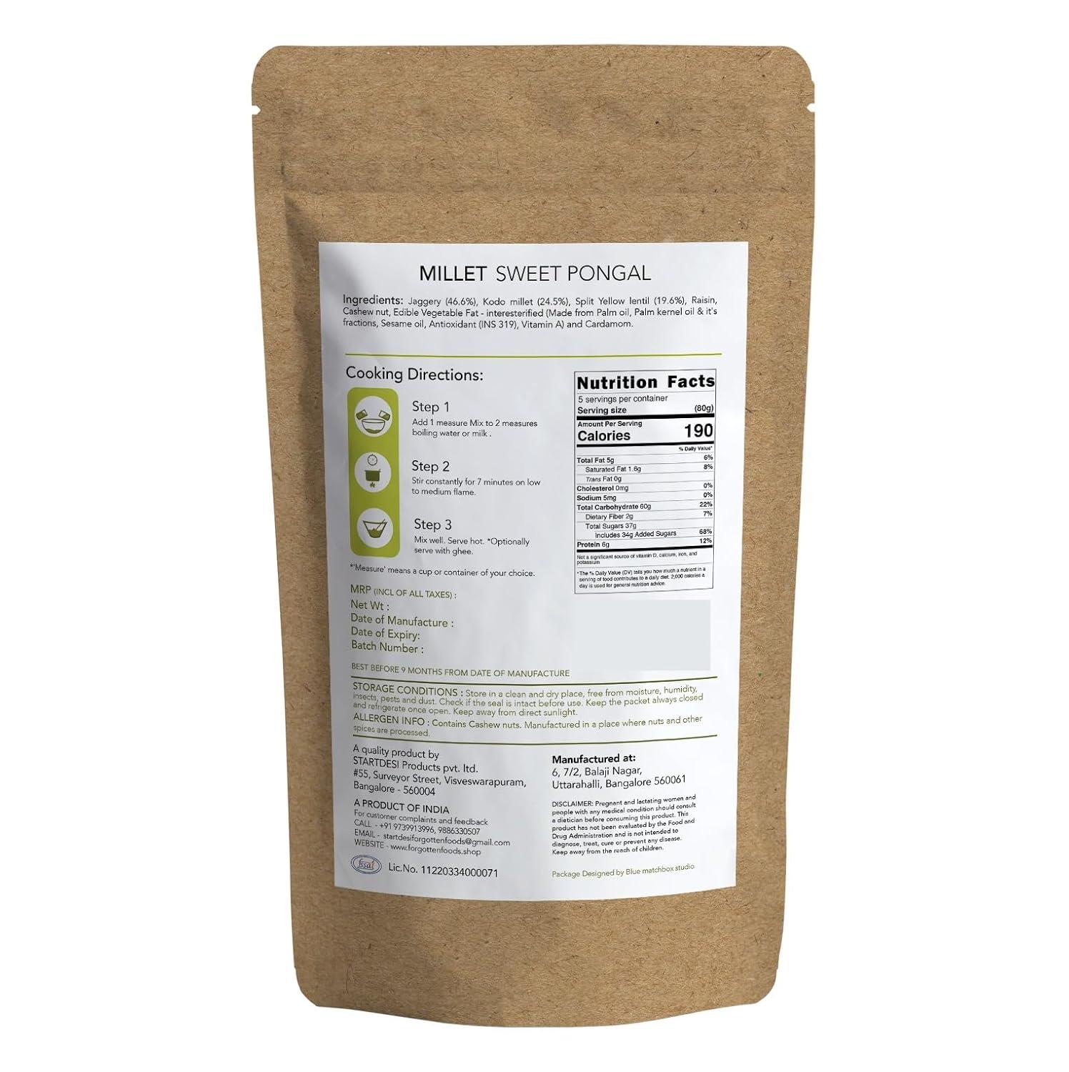 Each spoonful of our FORGOTTEN FOODS Sweet Pongal is a symphony of flavors, with the delicate balance of Kodo millet, moong dal, aromatic cardamom, plump raisins, and crunchy cashew nuts, creating a culinary masterpiece that delights the senses and nourishes the soul.