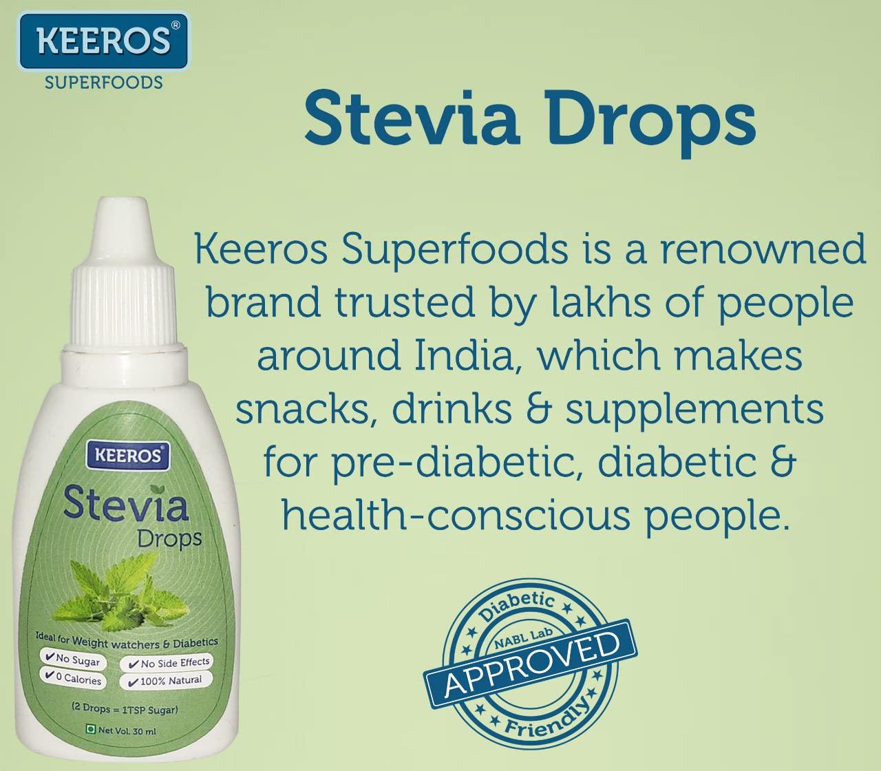 EASY TO USE- Keeros Stevia drops come in an easy to use bottle containing 30 ml of liquid stevia. 2 Drops = 1 Tablespoon of sugar. You can add 3-4 drops to your coffee or tea as per your taste. Due to its easy handling and storage, it is a good alternative to stevia powder.