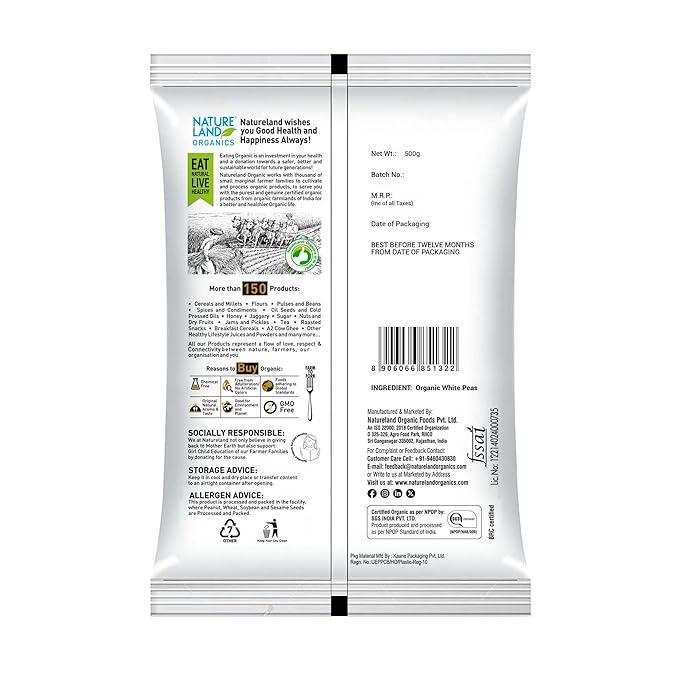Natureland Organics White Peas, also known as Safed Matar, are a wholesome, protein-rich legume widely used in Indian kitchens for their taste, texture, and nutritional value. These peas are organically grown, free from chemicals and pesticides, and carefully processed to retain their natural goodness.